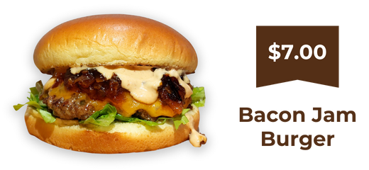 Pan Brioche, 150 gr de Carne, Mermelada de Bacon, Queso Cheddar, Lechuga, Aderezo.